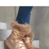 Beige insulated snow boots with fur Arilla are an essential element of the wardrobe for the young generation! These modern shoes are perfect for winter, thanks to their warm insulation. Their high ankle cut additionally protects against cold and snow. Made of rubber, they provide excellent grip on slippery surfaces. They have a round toe and are laced, allowing for a perfect fit to the foot. Available on the platform, they add style and originality to every winter outfit.