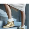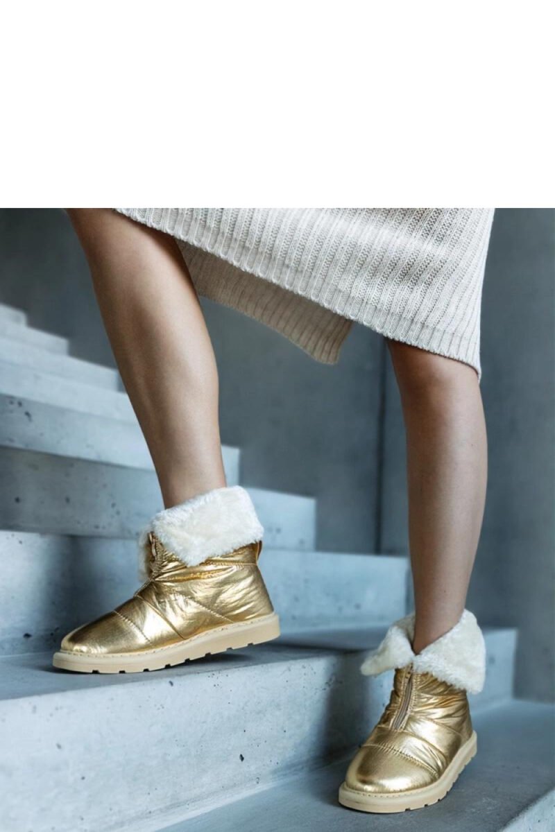 Gold insulated snow boots with a collar from Edidda are the perfect winter footwear that combines functionality with a fashionable design. Their sturdy stitching and round toe provide durability and comfort for long-lasting wear. Thanks to the insulation inside, your feet will stay warm even during the coldest frosts. The snow boots have a zipper closure, making it easy to put on and take off. The outer material is made of fabric, and the sole is made of golden rubber. These snow boots will surely make you look fashionable and feel comfortable throughout the winter. Perfect for autumn and winter.