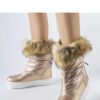 Metallic snow boots with decorative fur from Igne are the perfect solution for winter days. Made of high-quality materials, they provide excellent warmth and protection from the cold. The rubber sole ensures great traction, even on slippery surfaces. An additional advantage of these shoes is the unique platform that gives them a modern character. The round toe makes them both practical and stylish. Additionally, they are lined, making them ideal for chilly days. The decorative fur gives them an elegant look, making them a perfect complement to any winter outfit. Metallic snow boots with decorative fur from Igne are a combination of comfort, style, and popularity, which will make you look fashionable and feel comfortable even in difficult winter conditions.