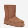 Women’s snow boots are perfect for cold days. Slip-on model, made of eco leather. Ankle-high upper. The inside is lined with thick fur. You can match this classic model with many winter outfits!