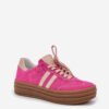 Stylish women’s sneakers made of high-quality natural suede are a perfect choice for any woman who values both comfort and a fashionable look. These unique shoes are set on a sturdy but lightweight platform, which provides additional height and subtly slims the silhouette. These sneakers blend well with both everyday outfits and more elegant ensembles, making them a versatile wardrobe staple.