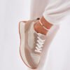 Women’s sports shoes made of eco suede and mesh, which provide lightness and breathability. Set on a platform, they offer additional height and comfort. Inside there is a foam insole covered with material, which guarantees comfort and cushioning with every step. Stylish and functional, these shoes will work great in everyday stylizations, combining a modern look with everyday comfort.