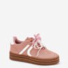 Stylish eco-suede sneakers are a perfect option for people who value comfort and a trendy look. Thanks to the platform, the footwear not only elevates the silhouette, but also wonderfully emphasizes a contemporary style. The laces are adorned with charming charms, adding a girlish charm and uniqueness. These sneakers go great with everyday outfits! When choosing a size, please refer to the size chart.