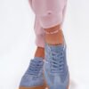 Low women’s sneakers made of natural suede. The toes of the shoes are rounded. Classic lacing allows for a perfect fit to the width of the foot, and the leather insole provides comfort and cushioning. Stylish and versatile, they go well with various outfits.