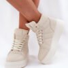 High-top women’s sneakers made of high-quality eco leather are the perfect choice for women who appreciate both comfort and modern style. Set on a platform, they provide additional stability and accentuate the silhouette, giving it lightness. The lace-up model allows for a perfect fit to the foot. These sneakers are perfect for many different stylings, from casual to more sporty.