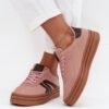 Women’s sneakers made of a combination of eco-leather and corduroy material. Set on a stable platform, they provide comfort when worn, and their low, fashionable style makes them perfect for everyday outfits. An additional advantage is the soft, removable foam insole covered with material, which guarantees comfort and ease of hygiene maintenance. These versatile shoes are ideal for casual and urban outfits.