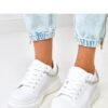 Stylish low-cut sports shoes that combine comfort and trendy design. Made of high-quality synthetic leather, with a classic round toe and laced-up, they guarantee comfort and a good fit to the foot. The model is set on a stable 4.5 cm platform, which adds subtle height and ensures comfort during wear. An eye-catching accent is the decorative chain with zircons, giving the shoes an elegant, feminine character. Perfect for everyday wear, for women who like to combine sporty style with a touch of glamour.