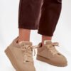 Women’s sneakers made of eco suede. The model is set on a rubber sole that provides good grip and stability while walking. Lacing allows for a perfect fit to the foot, and the soft lining ensures warmth and comfort on colder days. These stylish sneakers will work perfectly in everyday outfits, ideal for jeans, leggings, and tracksuits.