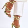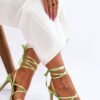 Classic women’s sandals were made of textile material. Set on a stiletto heel. The sandals have a soft, eco leather insole. Ideal for hot days, thanks to the airy cut. The sandals have an open, slightly rounded nose. This model is tied around the calf.