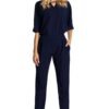 Comfortable and casual yet elegant jumpsuit with a loose top, short sleeves and straight legs with belt darts. For everyday and festive occasions.