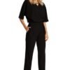 Comfortable and casual yet elegant jumpsuit with a loose top, short sleeves and straight legs with belt darts. For everyday and festive occasions.