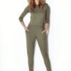 Overalls made of high quality knitwear. Straight cut, 3/4 sleeves, long legs, pockets. Funnel neckline on the back, decorative cord ending adds elegance. Its simple cut and details make it perfect with light elegant pumps or flat sandals.