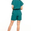 Summer jumpsuit with short sleeves and shorts, has two pockets in the pants, envelope neckline in the front, gathered at the waist at the waist. Jumpsuit sold without belt.This jumpsuit is sure to become one of your favorites during the upcoming warm spring and summer days.