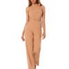 Elegant pantsuit with a halter neckline and a striking tie around the neck. The suit is fastened with a covered zipper, with slip pockets on the sides.