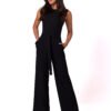 Sleeveless jumpsuit with patch pockets and a tie belt is a practical and complete outfit for many summer occasions.