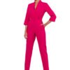 Jumpsuit with 3/4 sleeves and a lined collar, fastened with a covered zipper. Local creases on the waist line, narrow legs with stitching through the middle. Designed and sewn in Poland.