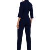 Jumpsuit with 3/4 sleeves and a lined collar, fastened with a covered zipper. Local creases on the waist line, narrow legs with stitching through the middle. Designed and sewn in Poland.
