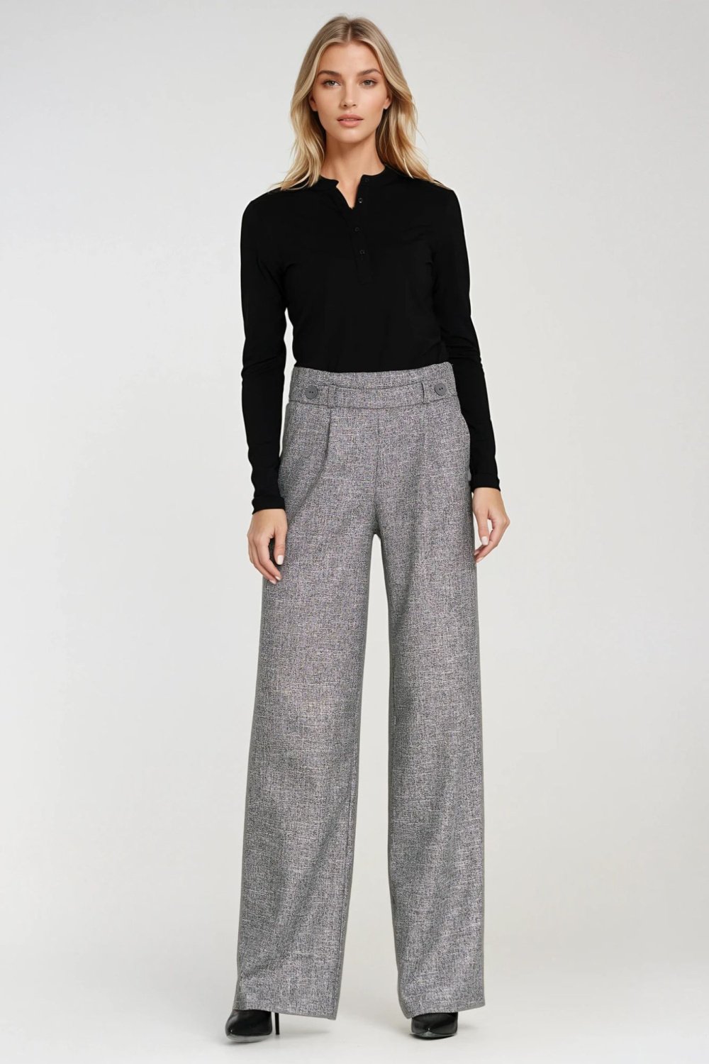 Must-have of the season! The unique high-waisted jumpsuit with suspenders is an absolute hit of the collection! The cut inspired by fashion from previous decades was combined with a mix of modern fabrics and a universal pattern. The model has wide legs and practical pockets. The suspenders are fastened at the back with two buttons at one suspender.