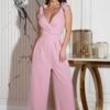 Elegant jumpsuit sewn from airy fabric. The neckline can be adjusted thanks to the ties on the shoulders . The model with a perfectly tailored waist slims and wide legs lengthen the silhouette. The suit is fastened with a covered zipper. Suit suitable for warm days, events and cocktail parties.