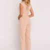 Presenting a unique fabric jumpsuit whose design and workmanship reflect the highest standards of Polish tailoring. This one-piece suit is a combination of modernity, comfort and unique style, emanating from Polish tailoring craftsmanship. The legs of the suit, tapered towards the bottom, catch the eye with decorative asymmetry on the side, adding subtle extravagance to the whole. The upper part of the suit is a sleeveless envelope blouse with an elegant collar and a V-shaped neckline. It’s a combination of classic and modern, creating a striking and stylish look. The waistband on the front of the jumpsuit features a mini press-stud closure and a covered zipper, making the garment not only elegant, but also easy to put on and take off. The back of the waist is elastic, which ensures that the suit fits perfectly to the figure, while maintaining comfort. Side pockets are a practical feature, adding utility to the suit. In addition, a belt with a buckle is included to accentuate the waist, adding extra charm to the styling. This suit is not just a garment, it is an expression of Polish precision and creativity in fashion. Design and production in Poland is a guarantee of high quality workmanship and attention to detail, which makes wearing this suit not only comfortable, but also pleasing to the eye.