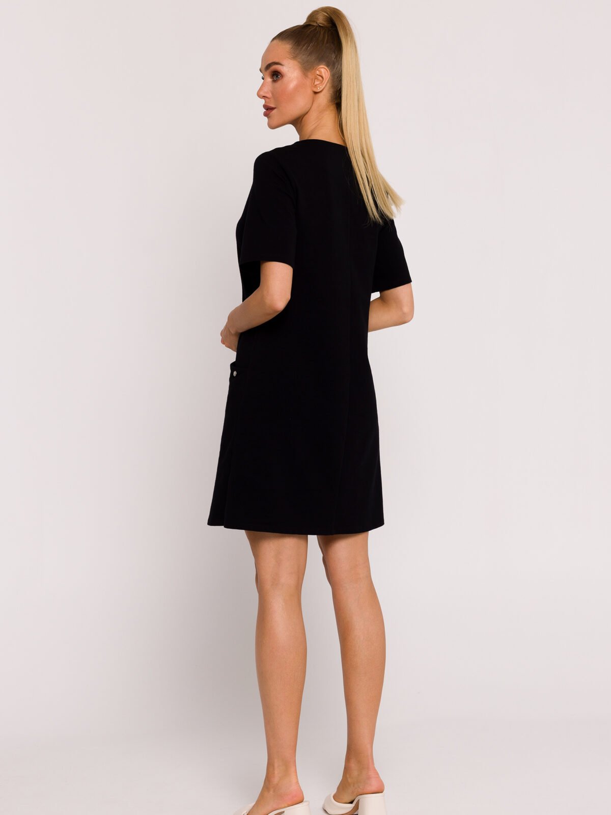 Elegant women’s jumpsuit made of high-quality fabric, combining modern style with comfortable wear. The top of the suit is fitted, with long sleeves, and the shoulders are emphasized with high pads, which gives the silhouette a distinctive and chic look. At the back there is a decorative metal zipper, which serves both a practical and decorative function. The legs are slightly widened, which adds a casual, elegant touch to the overall look. The suit was designed and sewn in Poland, which guarantees precision workmanship and high quality of the product.