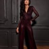 The Asurio jumpsuit is the perfect option for women who feel more comfortable in pants than in a dress. The jumpsuit is made of sequin embroidered fabric. It has a flexible lining that prevents scratching. The model features long, wide legs, an asymmetrical neckline covered with a rich amount of sequins. Whether you want to wear it to a house party, a club event, or a grand ball, the elegant maxi Asurio jumpsuit will provide New Year’s Eve comfort and add style. Just pair it with trendy minimalist accessories to create a unique look in no time. The elegant maxi Asurio jumpsuit makes such a big impression that it can easily replace an evening dress. The product is manufactured and sewn in Poland.