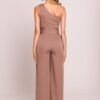 Elegant, asymmetrical jumpsuit with a motif on one shoulder, which catches the eye with its unique shape. Long sashes sewn to the sides give it lightness and a striking character, allowing for interesting styling. Slightly flared legs provide comfort and an elegant look. The model fastens with a concealed zipper on the side, ensuring a perfect fit. The whole design and made in Poland with the highest attention to detail, combining modernity with classic style.