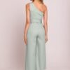 Elegant, asymmetrical jumpsuit with a motif on one shoulder, which attracts attention with its unique shape. Long scarves sewn to the sides give it lightness and a striking character, allowing for interesting styling. Slightly flared trousers ensure comfort and an elegant look. The model is fastened with a hidden side zipper, guaranteeing a perfect fit. The whole outfit is designed and sewn in Poland with the utmost attention to detail, combining modernity with classic style.
