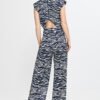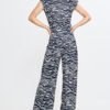 Stylish regular fit jumpsuit that combines classic with modern style. The boat neckline subtly highlights the neck line, while shoulder pads add sharpness and elegance to the silhouette. The fitted waist beautifully accentuates the figure, and wide palazzo-style trousers add lightness and casual chic. Practical zip fastening at the top and bottom at the back ensures comfort and perfect fit. An ideal choice for special occasions and stylish outings.