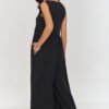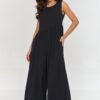 This maxi jumpsuit is the perfect choice for women looking for a comfortable and stylish solution for warm days. It has a loose cut that provides maximum comfort and diagonal stitching at the waist creating delicate pleats. Wide legs add lightness and elegance to the overall look, creating the perfect option for everyday styling or summer outings. The model is equipped with pockets, adding functionality and practicality. Pockets are a great solution when you want to have the most necessary items at hand without sacrificing an elegant look. Made of breathable material, which is not only pleasant to the touch but also practical and airy. The jumpsuit has a round neckline, ensuring comfort and a stylish look. Our maxi jumpsuit with wide legs is a perfect option for any occasion when you want a trendy yet comfortable solution. Thanks to the loose cut, functional pockets, and lightweight material, the jumpsuit will become your favorite choice for spring and summer days, guaranteeing both comfort and style.