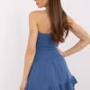 Stylish women’s jumpsuit perfect for everyday styling, combining comfort with a trendy look. Made of soft cotton, it provides comfort throughout the day. Short legs and sleeveless cut make it a perfect choice for warmer days. The jumpsuit is characterized by a simple, smooth pattern that emphasizes the minimalist character of the outfit. Ruches at the top and a ruffle on top add lightness and subtle femininity to the whole look. No fastening ensures comfort and ease of wearing.