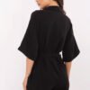 Light, muslin cotton jumpsuit is an ideal proposal for everyday stylizations on warmer days. The smooth texture of the material and the natural breathability of cotton guarantee comfort throughout the day. The model with short sleeves and a classic collar combines freedom and style. Buttoned at the front, which makes it easier to put on and adds an elegant finish. The jumpsuit is equipped with a fabric belt for tying, which emphasizes the waist and gives the silhouette a feminine shape. Sliding pockets on the sides increase its functionality and comfort. It is a practical and stylish choice for summer, perfect for a walk, shopping, and casual meetings with friends.