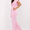 Universal, cotton jumpsuit with a smooth finish is a perfect choice for everyday wear and work. Made of breathable, natural cotton, it provides comfort and freedom of movement throughout the day. The model with short sleeves and a wrap neckline in the shape of a V subtly emphasizes the upper part of the silhouette, adding elegance to the whole. Long legs visually lengthen the silhouette, and the tie at the waist and included fabric belt beautifully accentuate the waist. Slip pockets on the sides increase functionality and add a casual character. This jumpsuit is a comfortable and stylish alternative for everyday styling, perfect for summer, the office, or more casual outings.