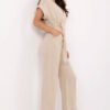 Universal, cotton jumpsuit with a smooth finish is a perfect choice for everyday wear and work. Made of breathable, natural cotton, it ensures comfort and freedom of movement throughout the day. The model with short sleeves and a wrap V-neck subtly emphasizes the upper part of the silhouette, adding elegance to the whole. Long legs visually elongate the silhouette, and the waist tie and included fabric belt beautifully accentuate the waist. Slip pockets on the sides increase functionality and add a casual character. This jumpsuit is a comfortable and stylish alternative for everyday styling, perfect for summer, the office, or more relaxed outings.
