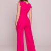 Modern jumpsuit made of smooth, slightly elastic satin-finished fabric, which gives it a subtle shine and elegance. Sleeveless model with an asymmetrical neckline adorned with an eye-catching fold that attracts attention and emphasizes the unique character of the outfit. The back closure with a covered zipper ensures comfort and a neat look. The upper part of the jumpsuit is fitted, with a high waist, which highlights the waist and gives the silhouette feminine shapes. Wide trouser legs pressed on the crease add style and ensure comfort when wearing. Side pockets are a practical addition, and the lack of lining makes the jumpsuit light and airy. Designed and sewn in Poland.