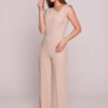 Modern jumpsuit made of smooth, slightly elastic fabric with a satin finish, which gives it a subtle shine and elegance. Sleeveless model with an asymmetrical neckline decorated with an eye-catching pleat that attracts attention and emphasizes the unique character of the outfit. The back zip closure ensures comfort and a neat look. The upper part of the jumpsuit is fitted, with a high waist, which accentuates the waist and gives the silhouette feminine shapes. Wide creased trousers add style and ensure comfort when wearing. Side pockets are a practical addition, and the lack of lining makes the jumpsuit light and airy. Designed and made in Poland.