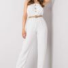 Sleeveless casual jumpsuit is a comfortable and stylish option for everyday wear. Made of a combination of cotton and polyester, it combines breathability with material durability. The smooth pattern and rectangular neckline with inserted elastic give it a subtly elegant look, while also providing comfort. Long pants and an elastic waist with inserted elastic emphasize the silhouette and provide freedom of movement. The jumpsuit has no fastening, which makes it exceptionally easy to put on. The whole is complemented by decorative buttons on the front and a fastened belt, which adds character to the styling and allows you to adjust the fit at the waist. Perfect for everyday outings comfortable, practical, and fashionable all in one.