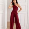 Isotta is a sophisticated jumpsuit with a minimalist cut that delights with spectacular details and modern elegance. Made of soft, flowing material, it combines classic simplicity with a bold approach to form. The asymmetrical one-shoulder neckline subtly exposes the neck and shoulders, adding lightness to the silhouette. The back with open back attracts attention with a decorative interweaving of fabric, creating a unique, sensual accent. The lack of sleeves is balanced by long, flared trousers that optically lengthen the legs and guarantee comfort. At the waist, there is a wide belt with a gold buckle that accentuates the feminine silhouette and complements the elegant character of the design. Isotta is a proposal for women looking for a modern alternative to a sensual, refined, and classy dress. Ideal for special occasions: evening outings, elegant dinners, or festive events. Each element has been carefully designed and made in Poland, with attention to detail and the highest quality.
