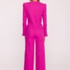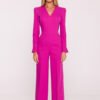 An elegant jumpsuit made of denim-like fabric is a unique proposal combining modern style with a classic form. Slightly stiff, matte, and slightly elastic fabric beautifully holds the shape, while the lining ensures comfort and impeccable overall fit. The model features a V-neckline, which subtly slims the neck and adds lightness to the silhouette. Long sleeves with a delicate flare at the cuffs introduce an elegant, refined accent. The concealed zipper closure at the back gives the whole a coherent and neat look. The top of the jumpsuit has a clearly defined, structural line of shoulders and a fitted waist, further highlighted by a metal logo chain. Wide palazzo-style trousers reaching the floor visually elongate the silhouette and give it balanced, slim proportions. Designed and made in Poland, created for women who appreciate modern elegance, comfort, and perfect finishing in every detail.