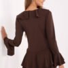 A short women’s jumpsuit is an elegant and comfortable option for everyday outings. Made of a high-quality blend of polyester, elastane, and viscose, it ensures comfort and perfect fit to the silhouette. The smooth pattern and long sleeves give it a timeless character, while the tied V-neck subtly accentuates the feminine neckline. The jumpsuit features decorative ruffles and a jabot, adding lightness and elegance to the outfit, creating a uniquely feminine and fashionable look.
