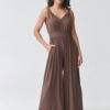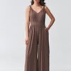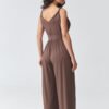 Stylish women’s jumpsuit with straps is the perfect choice for women looking for a combination of elegance and comfort. The light, flowing material beautifully drapes the silhouette, and the accentuated waist gives the figure proportions and a feminine character. The subtle V-neckline slims the upper part of the silhouette and adds lightness to the whole. The model has wide legs, which provide freedom of movement and fit into current trends. Thanks to this, the long women’s jumpsuit will work perfectly both for everyday wear and for special occasions. It is a great alternative to a dress – perfect as a jumpsuit for a wedding, reception, holiday trip, or date. The universal cut allows for various stylizations, combined with sandals creates a light, summer look, and with heels it takes on a more elegant character. If you are looking for a timeless model, this fashionable jumpsuit with wide legs will be an excellent choice.
