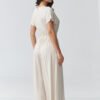 Modern women’s jumpsuit with wide legs is a perfect choice for women who appreciate style and comfort in one. The loose, flowing cut beautifully complements the silhouette, and the elastic gathering at the waist subtly accentuates it. The deep V-neck slims the neck and adds a feminine touch to the whole look. This elegant jumpsuit with short sleeves is perfect for both everyday styling and more formal occasions. The wide, freely falling legs provide comfort and fit into current trends. It is an ideal choice as a jumpsuit for a wedding, reception, date or work. Thanks to its versatile cut, the model pairs perfectly with heels, sandals or sporty footwear, creating a smart casual look. If you are looking for an alternative to a dress, this fashionable women’s jumpsuit will be a great solution.