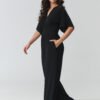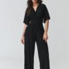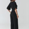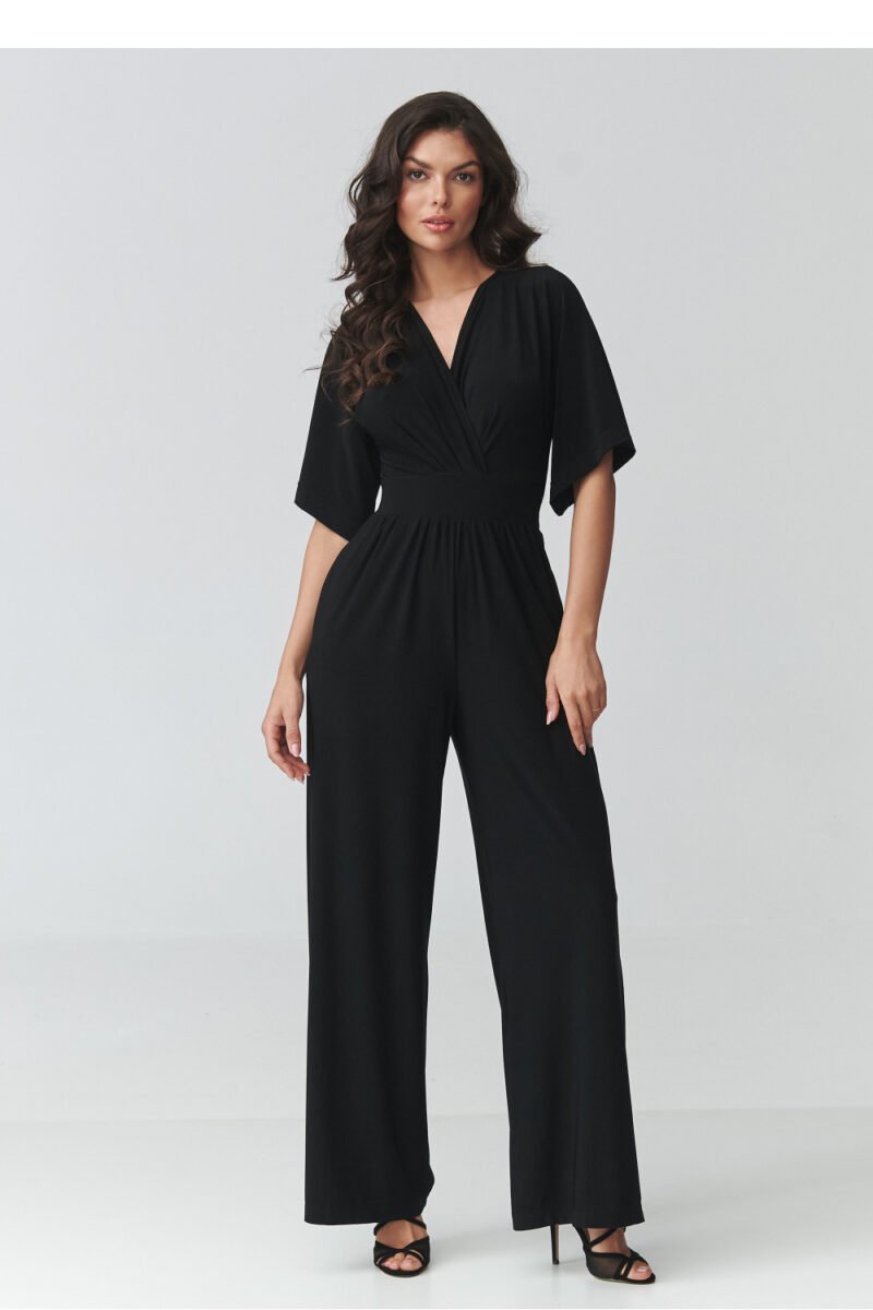 Stylish women’s jumpsuit is the perfect choice for women who appreciate elegance, comfort, and timeless style. The model stands out with a feminine cut with a wrap neckline, which subtly accentuates the silhouette and adds lightness and class to the styling. The fitted waist beautifully shapes the body proportions, while the wide legs give the whole a modern character and ensure full freedom of movement. This elegant jumpsuit for special occasions will work perfectly at parties, family celebrations, business meetings, or evening outings. Thanks to its carefully designed cut, it combines wearing comfort with a fashionable look, making it a great alternative to a classic dress. Short sleeves provide comfort, while practical pockets increase the functionality of the model.