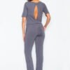 A fashionable and extremely feminine jumpsuit, made of soft, airy viscose, elbow-length sleeves. A neckline at the front, a button fastening at the back and a slit in the back exposing the body in a sexy way. Waistband with elastic band, pockets hidden in side seams. Definitely cannot miss in your wardrobe! Model available in three beautiful colors. The detail photo shows the back of the model.