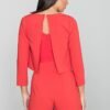 Extremely impressive two-piece suit. Bottom is an elegant, short shorts with wide, turned up legs. The top is a single skirt with a hook-and-eye fastener at the back. The back is split, temptingly exposing a part of the back. Sleeves 7/8. The bottom of the suit is made of two types of fabric, the top is made of elastic fabric.