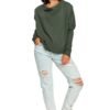 Loose-fitting women’s sweatshirt with long ribbed sleeves, a draped neckline and a slightly cut-out back neckline. Casual and fashionable.