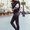 A comfortable hooded kangaroo sweatshirt in black with colourful inserts. Made of warm and slightly elastic material. Polish product. Brand numoco.