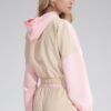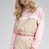 Short two-coloured hoodie with a striped pattern at the bust, sleeves and bottom hem finished with a wide elastic band.