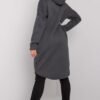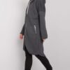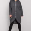 Ladies’ sweatshirt with an extended cut, long sleeves. The sweatshirt has an asymmetrical bottom, a zipper, and a hood. There are zippered pockets on the sides.