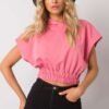 Ladies’ sweatshirt with a loose fit, short sleeves and a hood. Wide rubber band at the bottom.